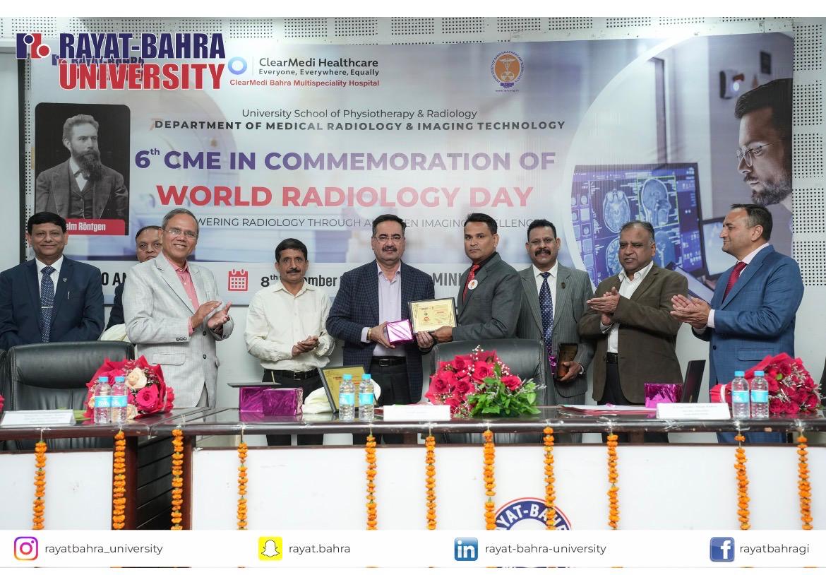 The Department of Medical Radiology & Imaging Technology, University School of Physiotherapy & Radiology, Rayat Bahra University, successfully organized the 6ᵗʰ Continuing Medical Education (CME) on the occasion of World Radiology Day 2025, under the theme “Empowering Radiology through AI-Driven Imaging . It also paid tribute to Wilhelm Conrad Roentgen on the 130ᵗʰ anniversary of his discovery of X-rays, which revolutionized medical imaging.